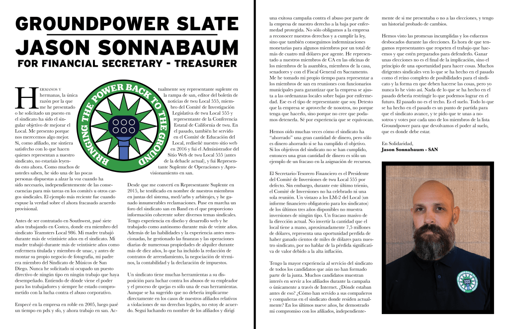 Jason Sonnabaum for Financial Secretary-Treasurer PNG ESP