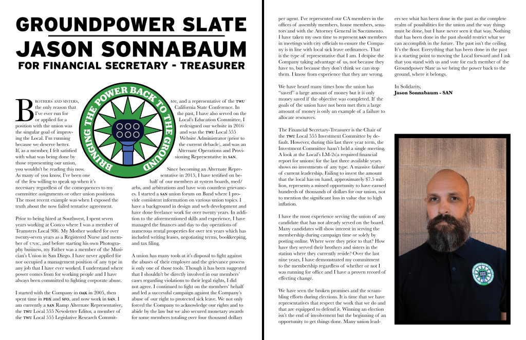 Jason Sonnabaum for Financial Secretary-Treasurer PNG versión en español Click here for the Campaign Letter PDF
